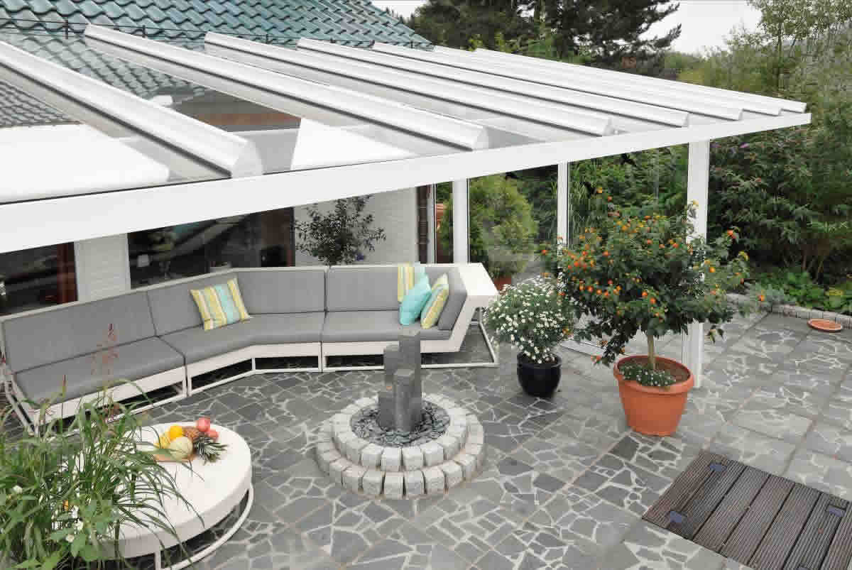 De keuze in glasdaken is bijzonder ruim. De laatste ontwikkeling is het glasdak met volledig horizontale dakconstructie maar waarin het glas licht aflopend gemonteerd is. Optisch bijzonder fraai wanneer een hellende dakconstructie niet past bij de bestaande architectuur of simpelweg niet mogelijk is door te weinig hoogte. U vindt het in onze showroom.
